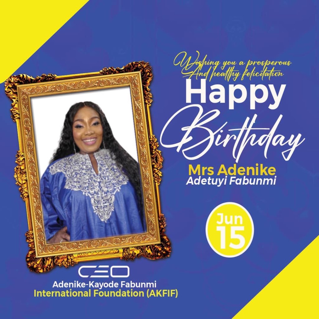 Happy Birthday to our very own President/CEO AKFIF, Mrs. Adenike Fabunmi. We wish you all the wonderful things of this world, and we pray that this new year will usher in good things for you, your family and the entire AKFIF family Amen.