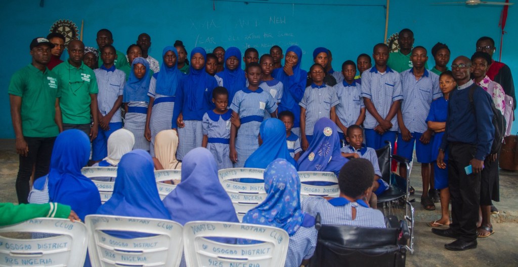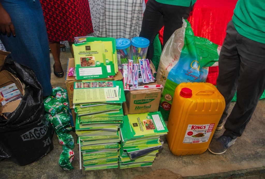 Mr. Abayomi presented the gift on behalf of the convener for the welfare of the students, including 2 bags of rice, two kegs of groundnut oil, writing materials, detergents, toothpastes, toothbrushes, and sanitary pads, which were received by the students. He also awarded prizes to outstanding students in the secondary section such as Abisola Elizabeth for excellence in English, Ibrahim Sulamsn in Mathematics, and Oyewumi Funmilayo in Science. In his closing remarks, he encouraged students to think beyond their immediate surroundings and mentioned Yinka Ayefele, an artist thriving in the music industry despite his challenges.
